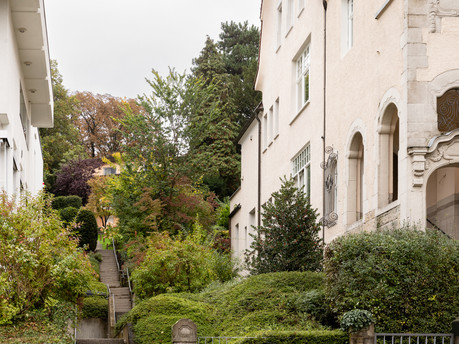 Das Wohnhaus der Familie Dreifus in den 1930er Jahren in Stuttgart (links) und wie es heute aussieht (rechts). Jedes Objekt wird in der Ausstellung mit einem zeitgenössischen Foto des ursprünglichen Wohnortes gezeigt. © Fotos: Yad Vashem Objektsammlung (links), Christina Stohn (rechts)